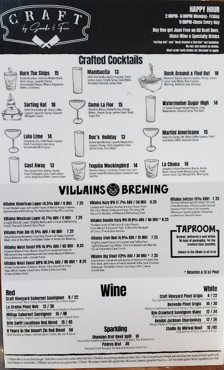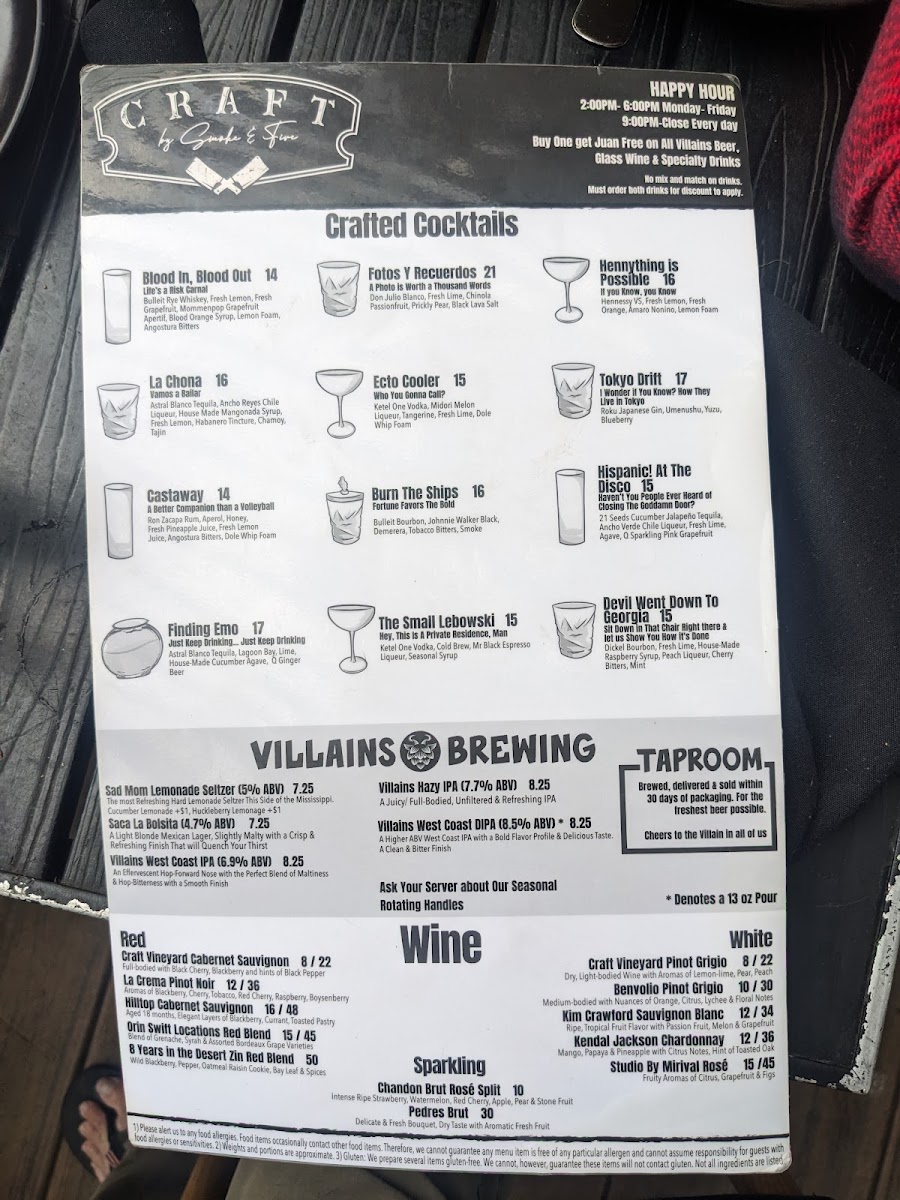 The beverage selection includes cocktails, complementing the food offerings and supporting a casual dining experience appropriate for lunch or dinner occasions. Overall, the menu is designed to accommodate a range of appetites and preferences with a focus on barbecue specialties and American comfort food.